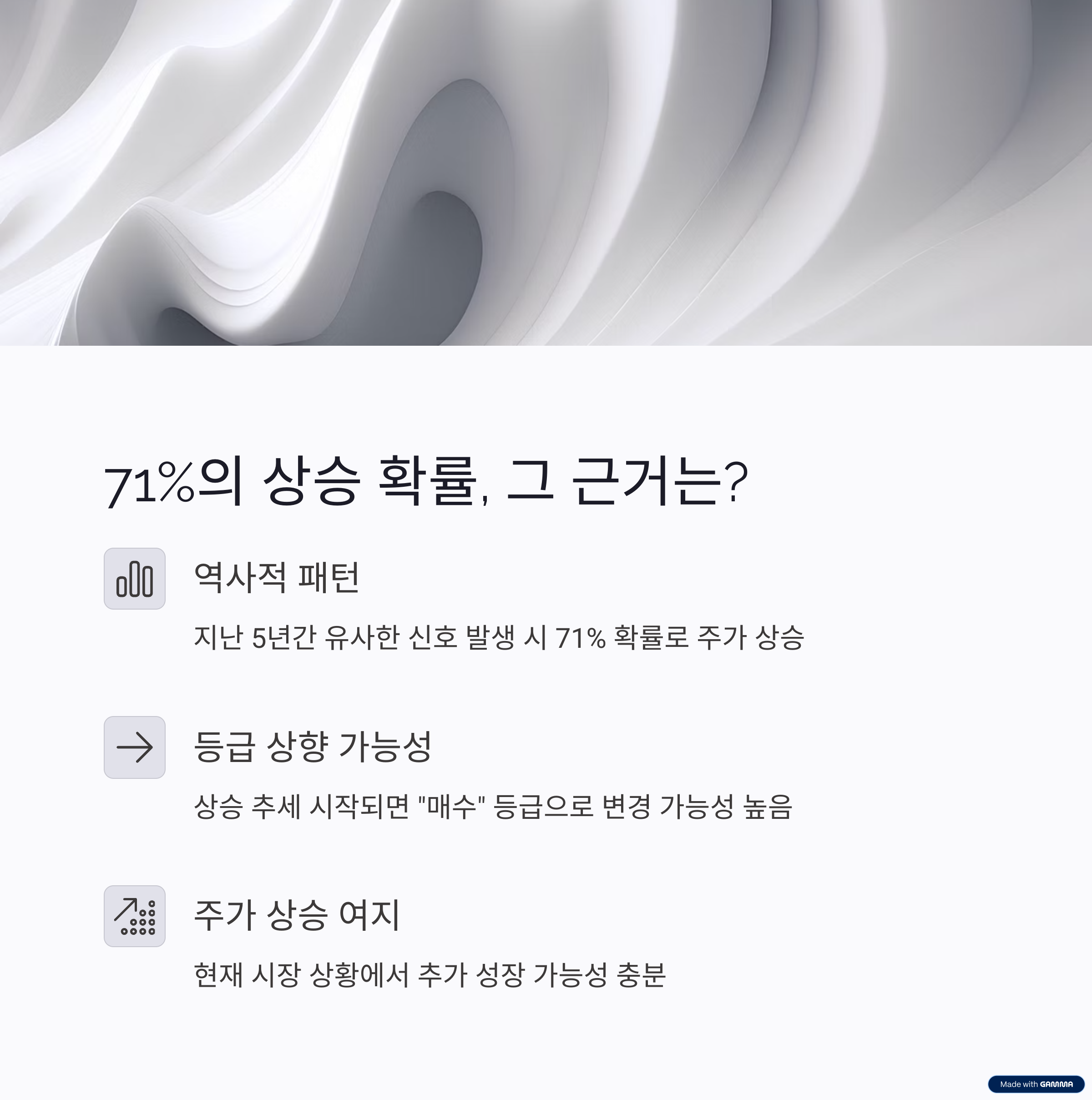 지난 5년간 이런 신호가 있었을 때 71% 확률로 주가가 올랐어.
